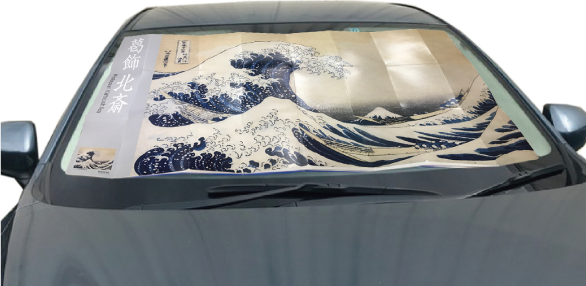 「ミウラ折り サンシェード」は、車のフロント用でワンタッチで開閉が出来てコンパクト。サイドボードに入るので座ったまま収納が簡単です。ノベルティをはじめ、海外へのお土産としても好評です。